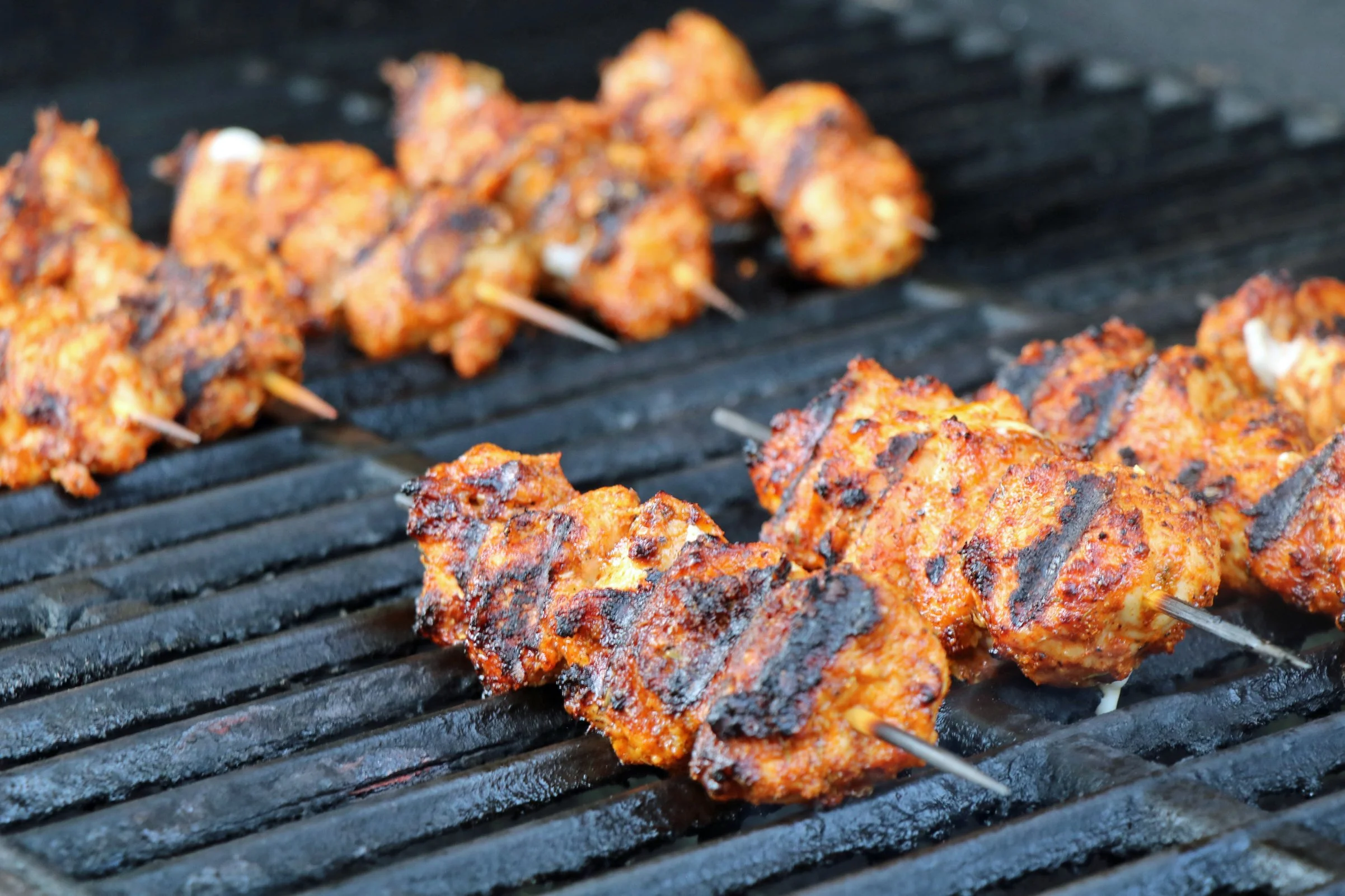 Thread chicken onto bamboo skewers (I prefer smaller skewers that are about 7 inches, but any size will work).
